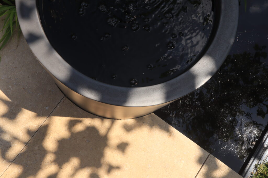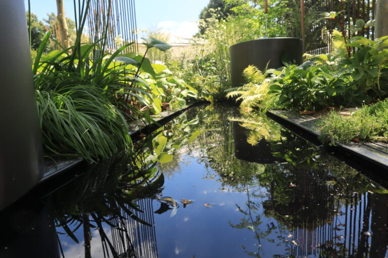 Three circular water features, each with gentle running water, added movement and sound to the garden, reinforcing its calm and contemplative atmosphere. The layout demonstrated how a garden can be both a complete retreat and a distinct pocket within a larger landscape, showing that even a small space can invite dialogue, discovery, and depth.