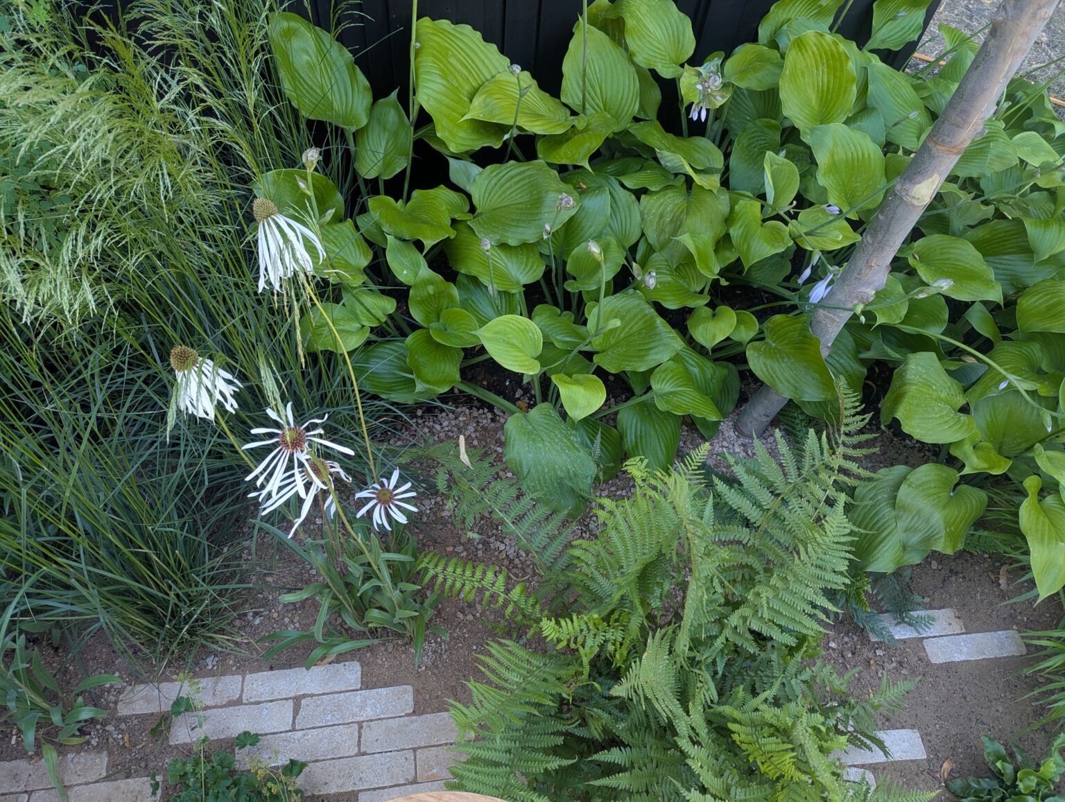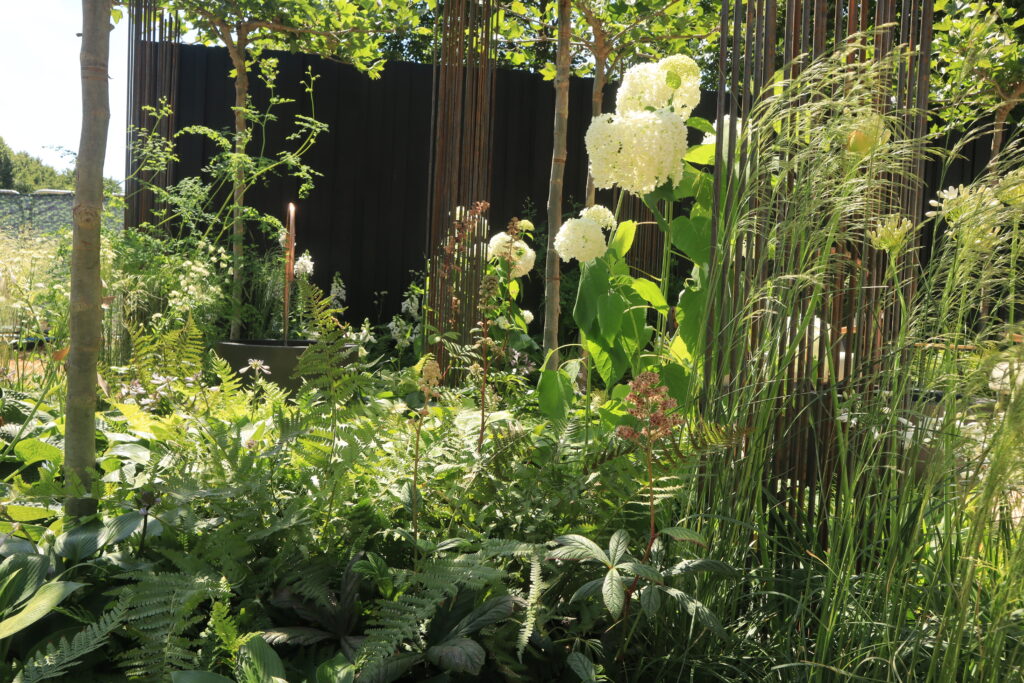The Garden of Two Tales featured a semi-shaded woodland-edge palette, designed to thrive in dappled light and evoke a sense of calm. The planting scheme combined soft textures, muted tones, and wildlife-friendly species, creating a layered, immersive experience that complemented the garden’s reflective atmosphere.