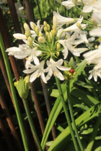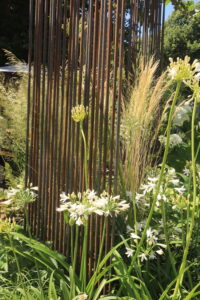 - Agapanthus – Tall stems with globe-shaped flowers bring vertical drama and late-summer colour. Thrives in sunny spots.